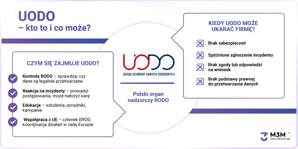 W przypadku incydentów, takich jak wycieki danych, UODO prowadzi postępowania i może ukarać organizację nawet grzywną do 10 mln euro lub 2% rocznego obrotu.
